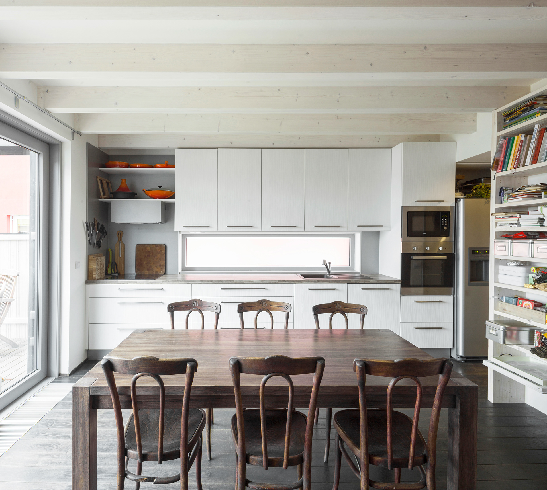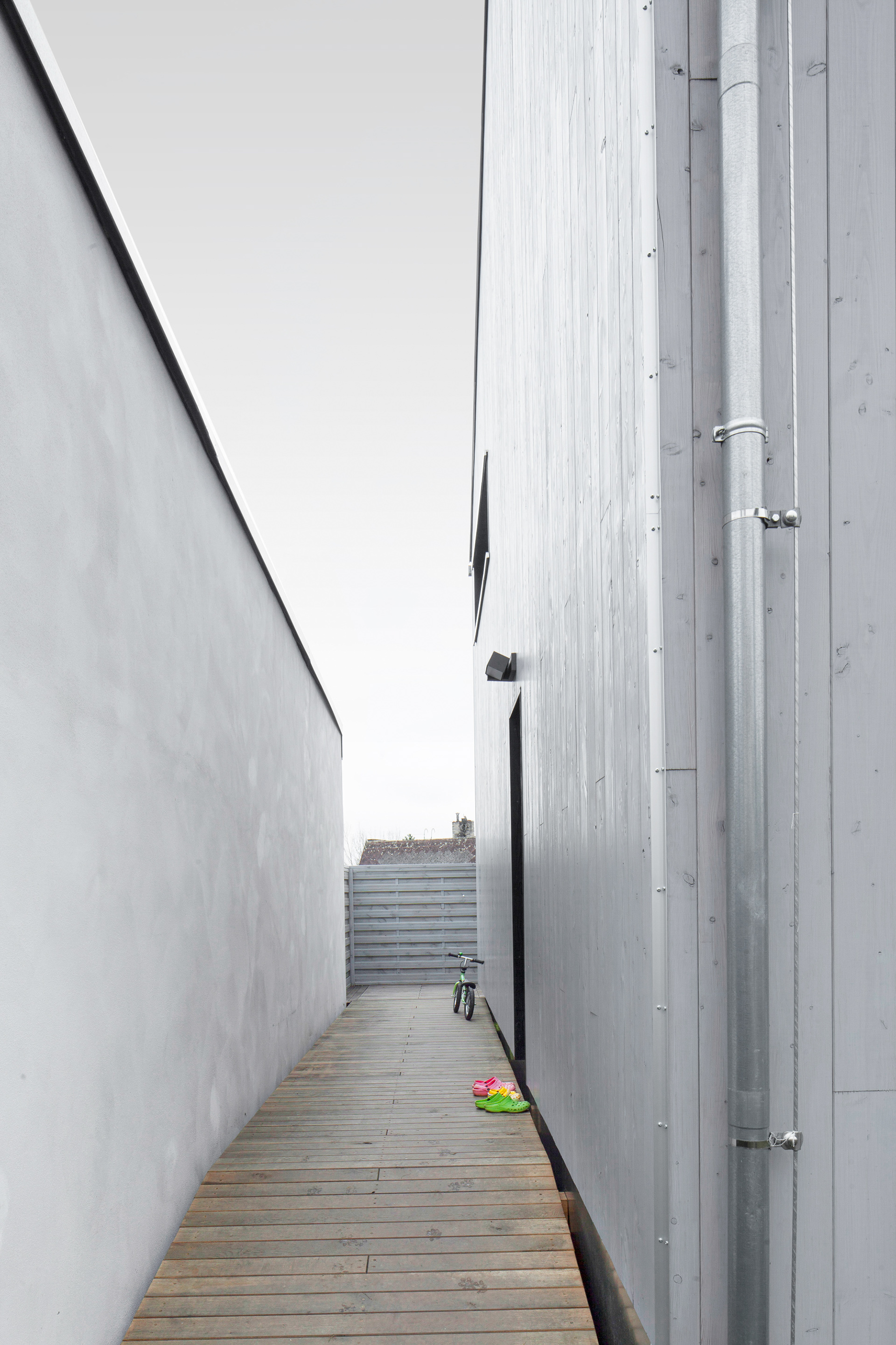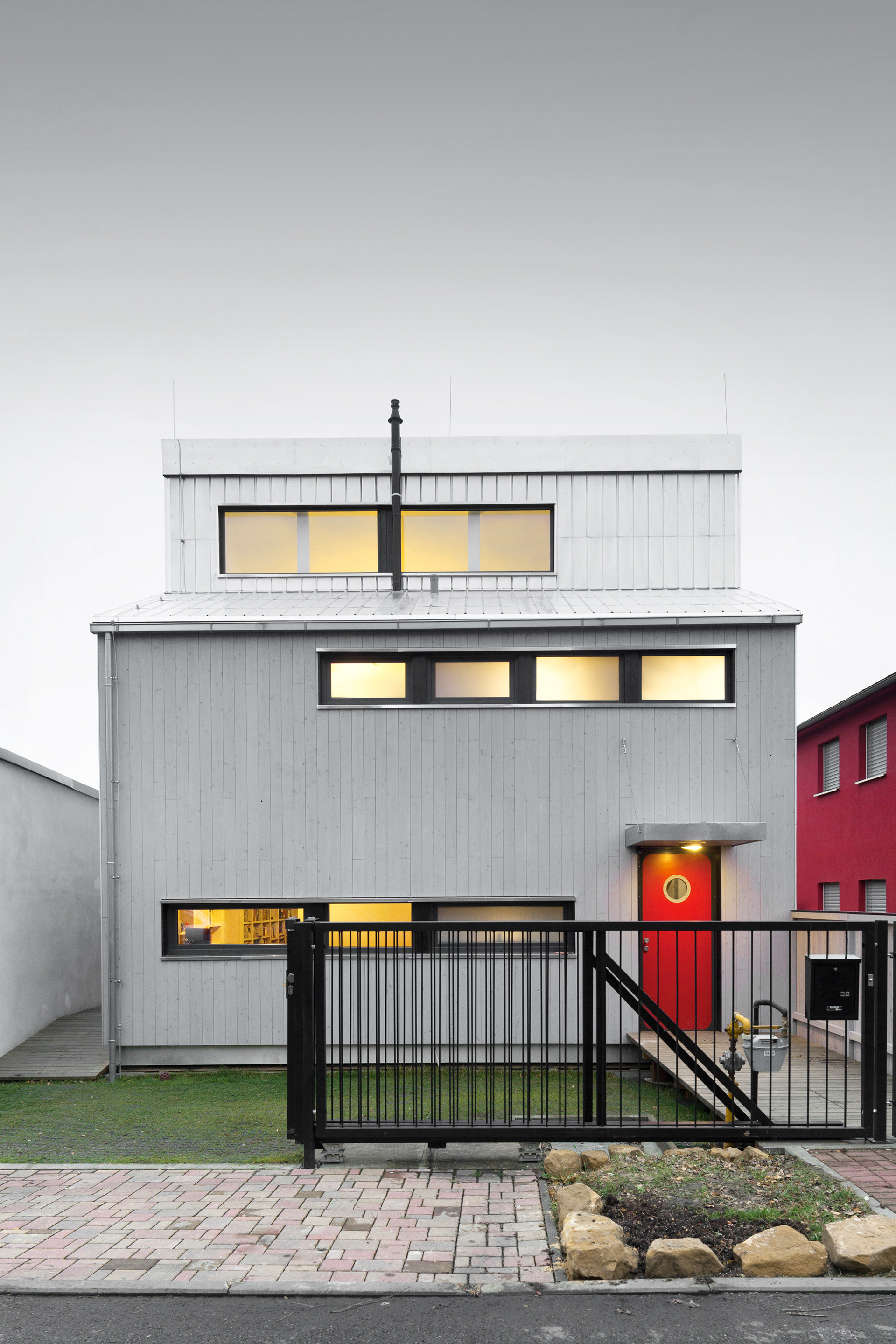 The land on which our building is located is only 238 m2 and narrows and slopes towards the south. The BABU house responds to these facts both in terms of expression and materiality and follows the natural development of the street. This was a key point of sustainability and development of the site when solving the design. It was necessary to deal with the height differences between neighboring buildings.