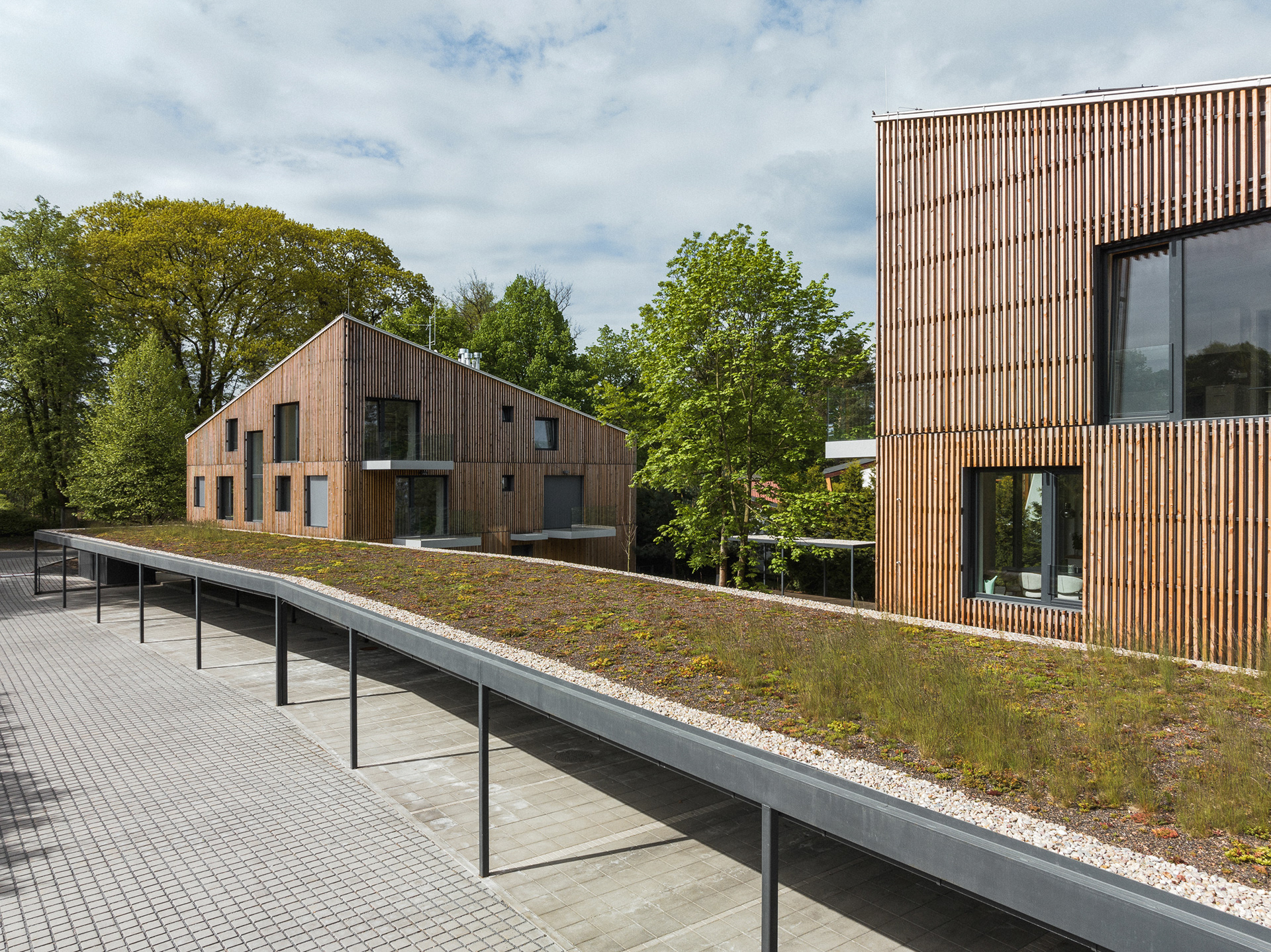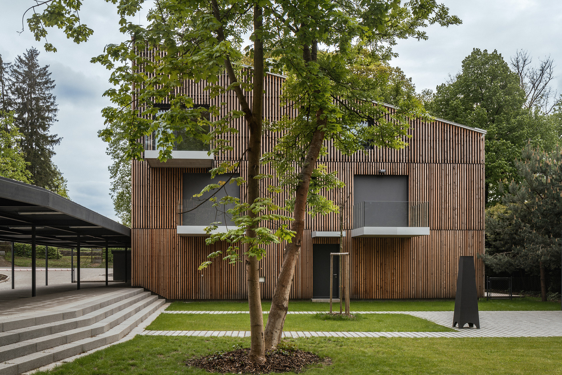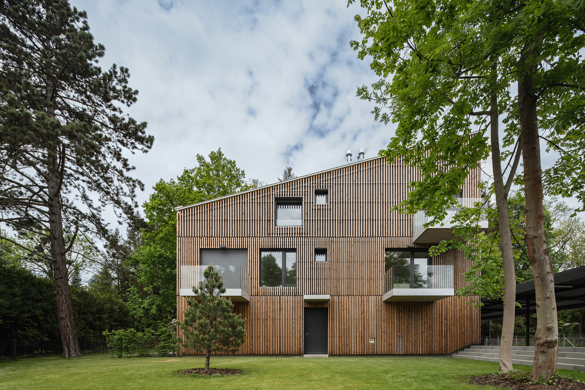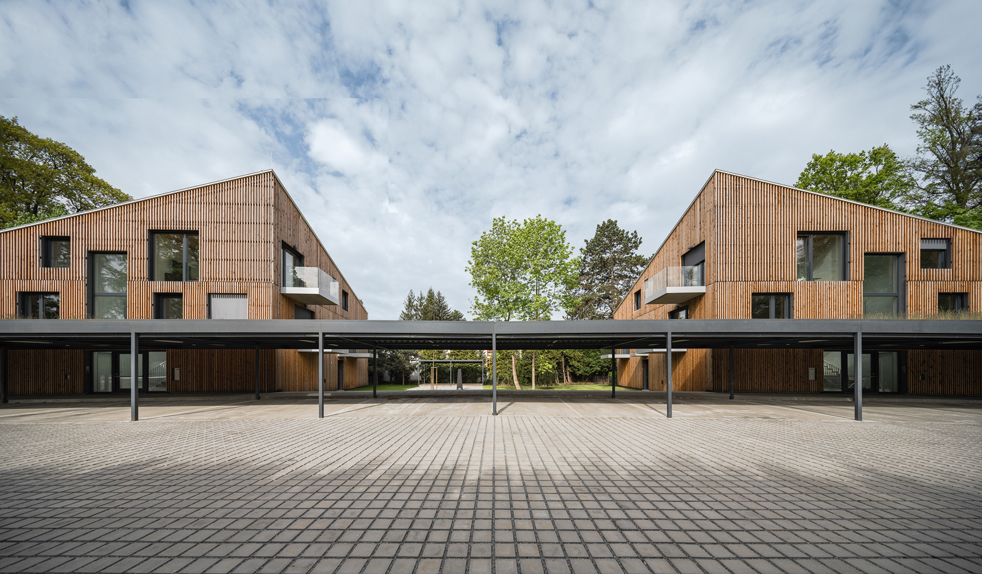 Dynamické fasády domu a dřevěný obklad navozují civilní a přívětivý výraz nových domů, materiálově propojený s okolím a přírodou. Viladomy jsou navrženy jako schodišťové domy - typologie, kdy jsou všechny byty na podlaží přístupné z jednoho vertikálního komunikačního prostoru, přičemž oba viladomy jsou tři patrové, horní patro je podkrovní.