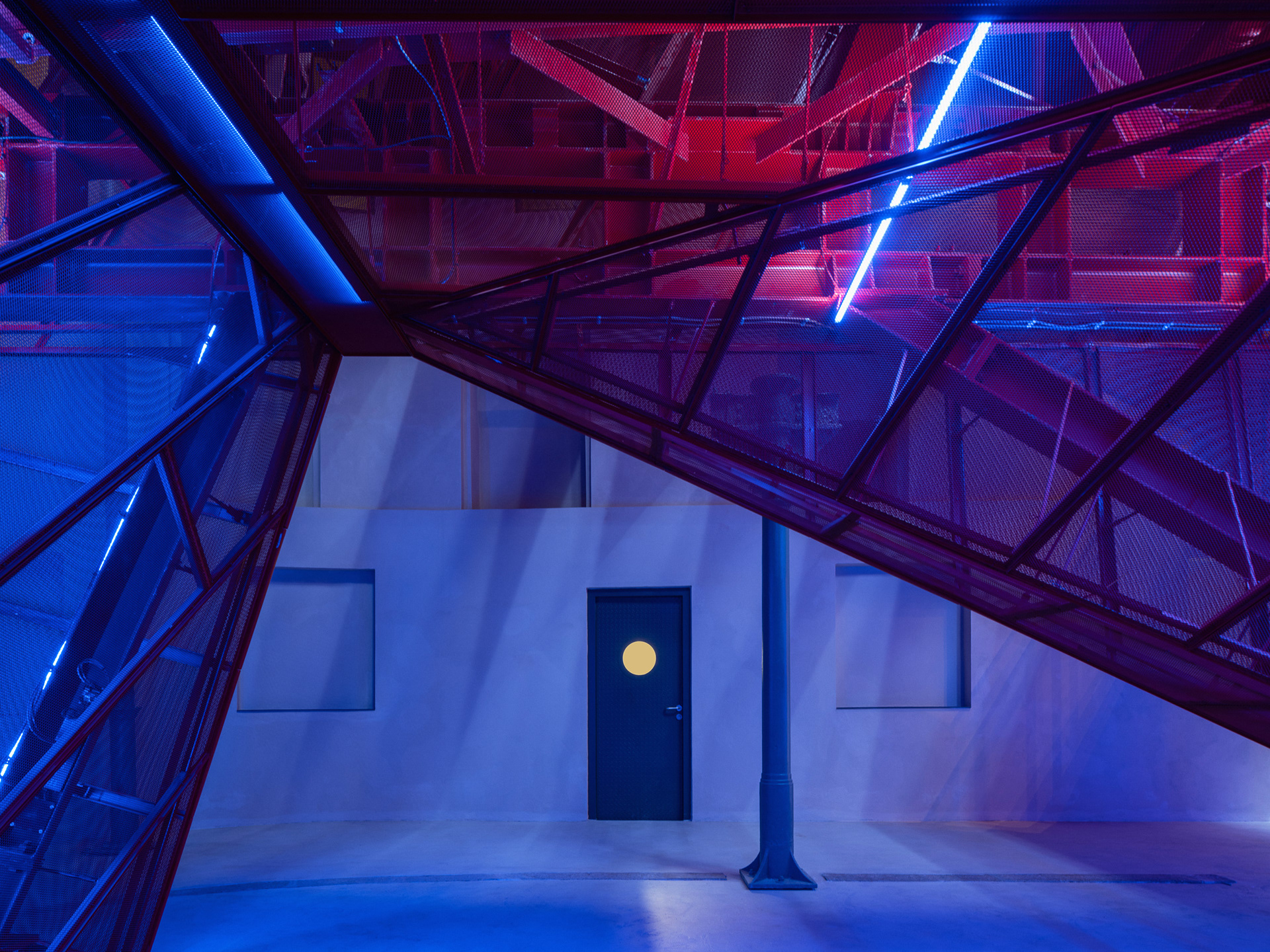 Nový sál je vložen do prostoru dvorany historického objektu. Vestavěná konstrukce se památkové budovy nedotýká a stojí na šesti nohách na bodových základech (mikropiloty). Objem se důsledně vyhýbá přímému kontaktu s historickou budovou i s původními litinovými sloupy při obvodové stěně. Veškeré potřebné audiovizuální, scénické a akustické technologie jsou součástí vloženého objektu.