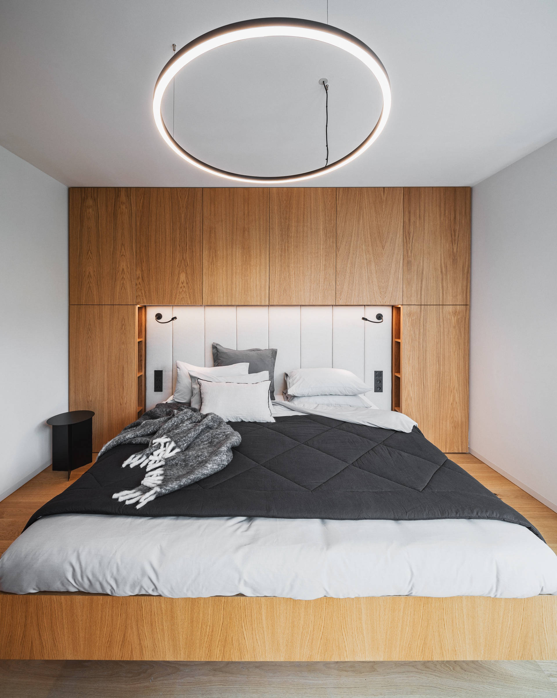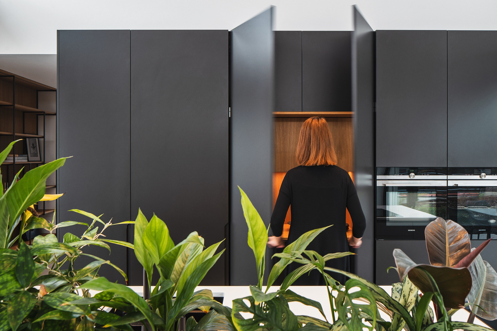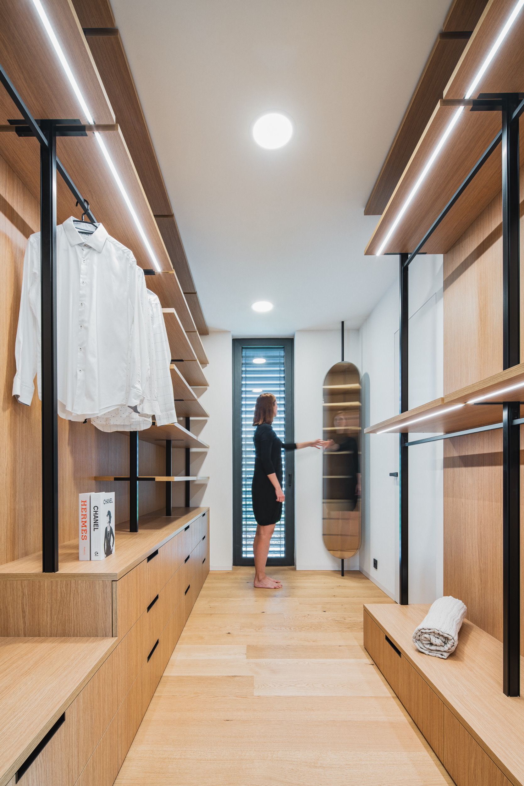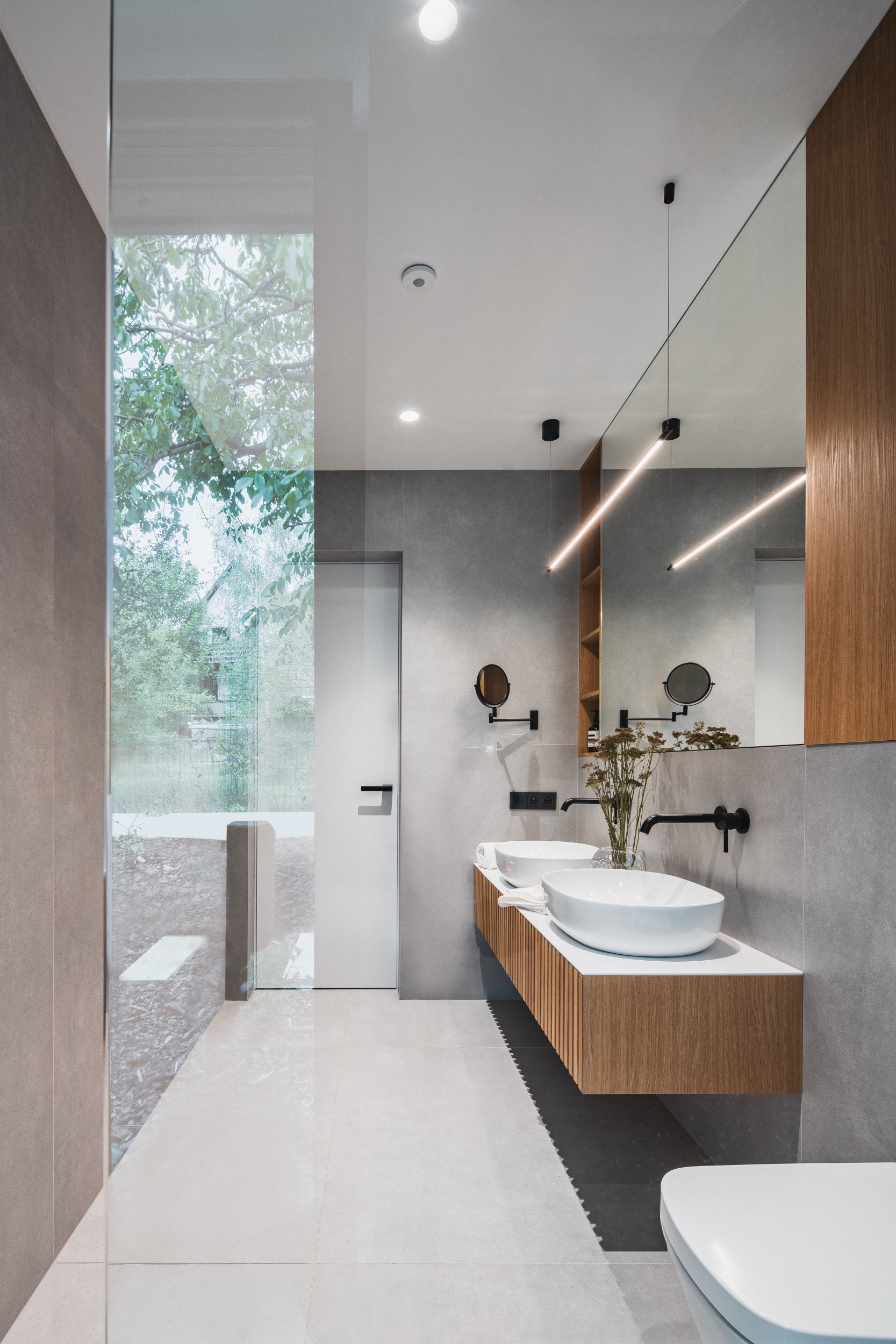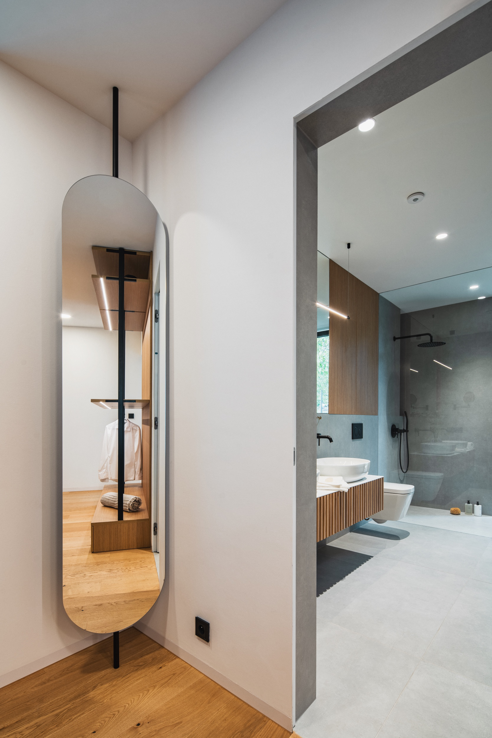 Koncept návrhu domu vychází z potřeby vypořádat se se soukromím na pozemku a z logických provozních vazeb. Dům má tak tvar písmene „U“ s tím, že atrium se otevírá směrem k jiho-západu a poskytuje tak majitelům dostatek soukromí při pobytu v exteriéru. Do atria, kde je umístěno venkovní kryté sezení je přístup ze všech hlavních obytných místností domu.