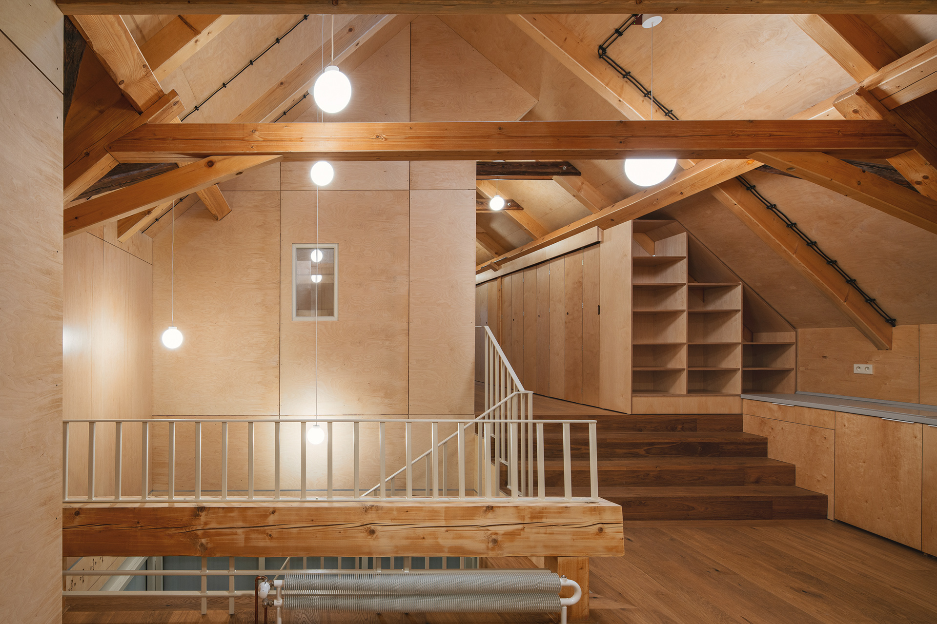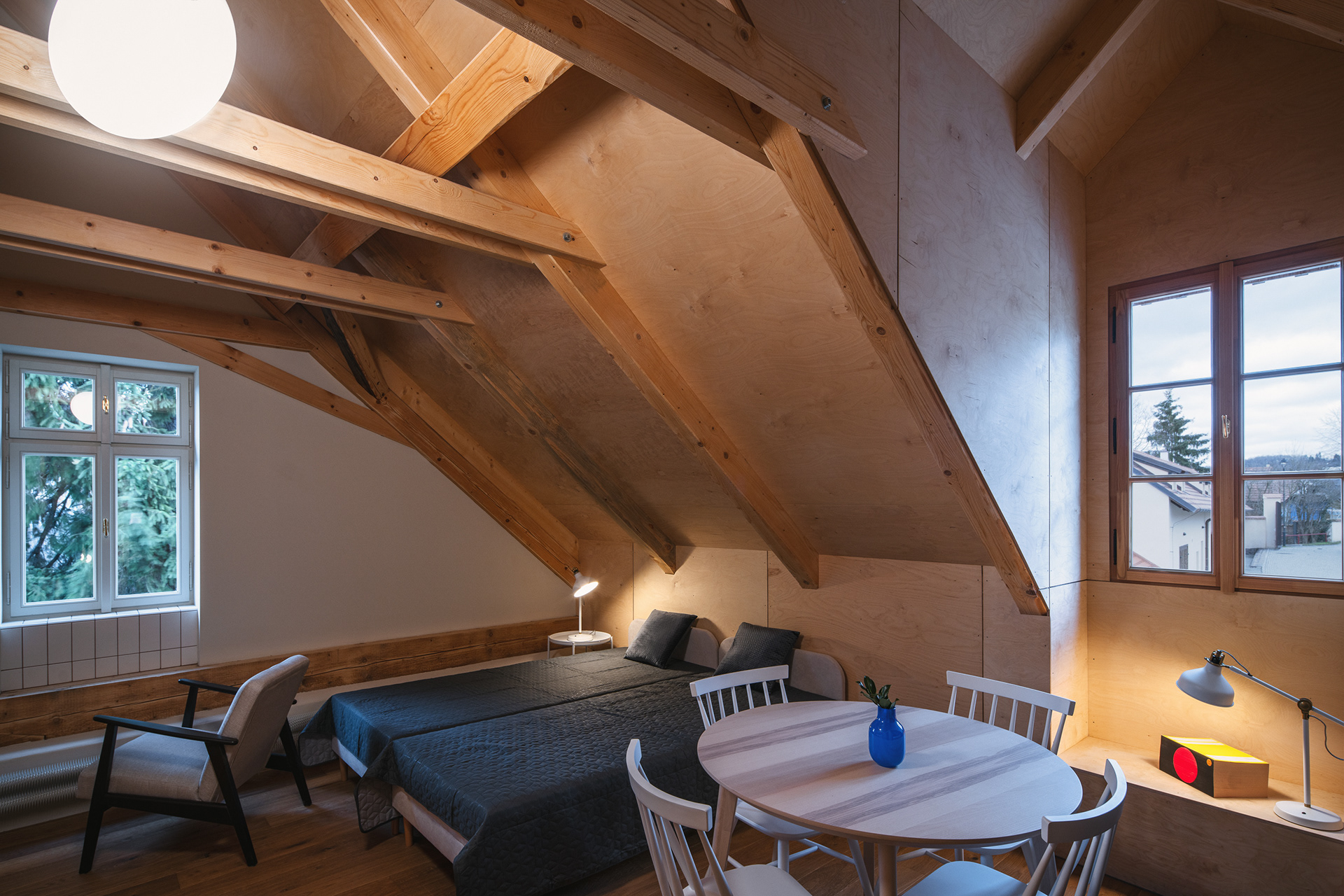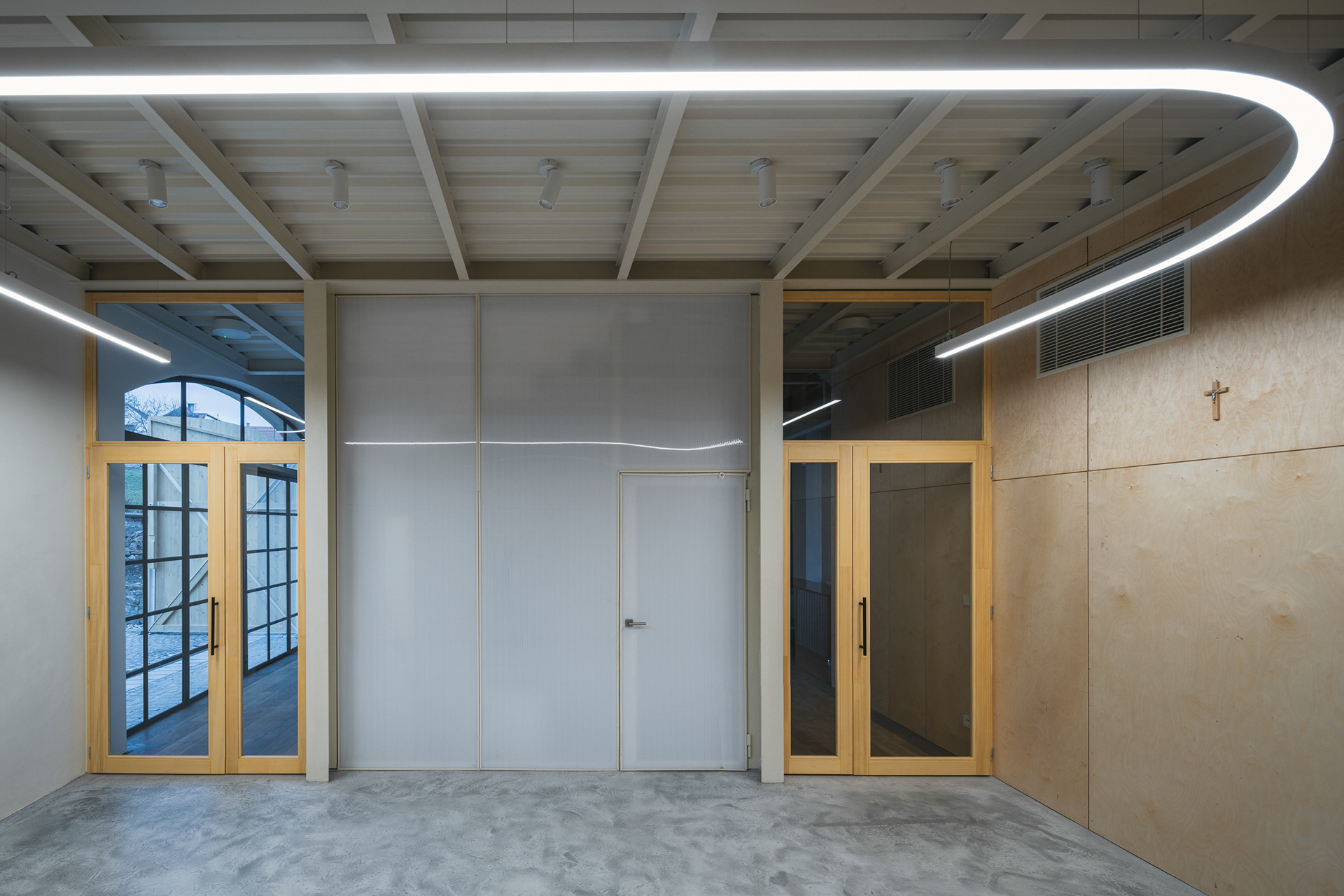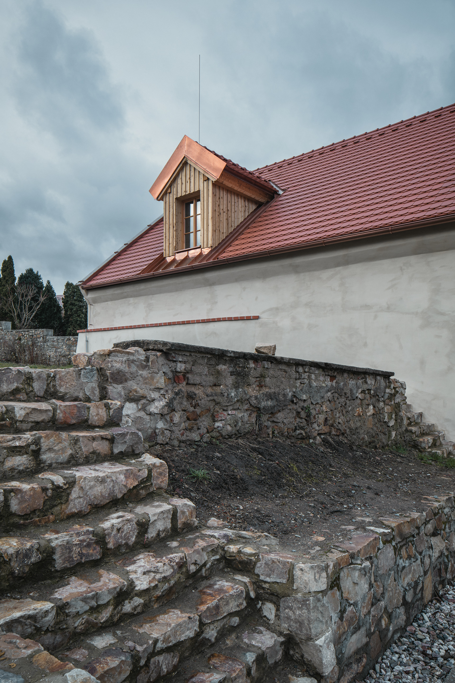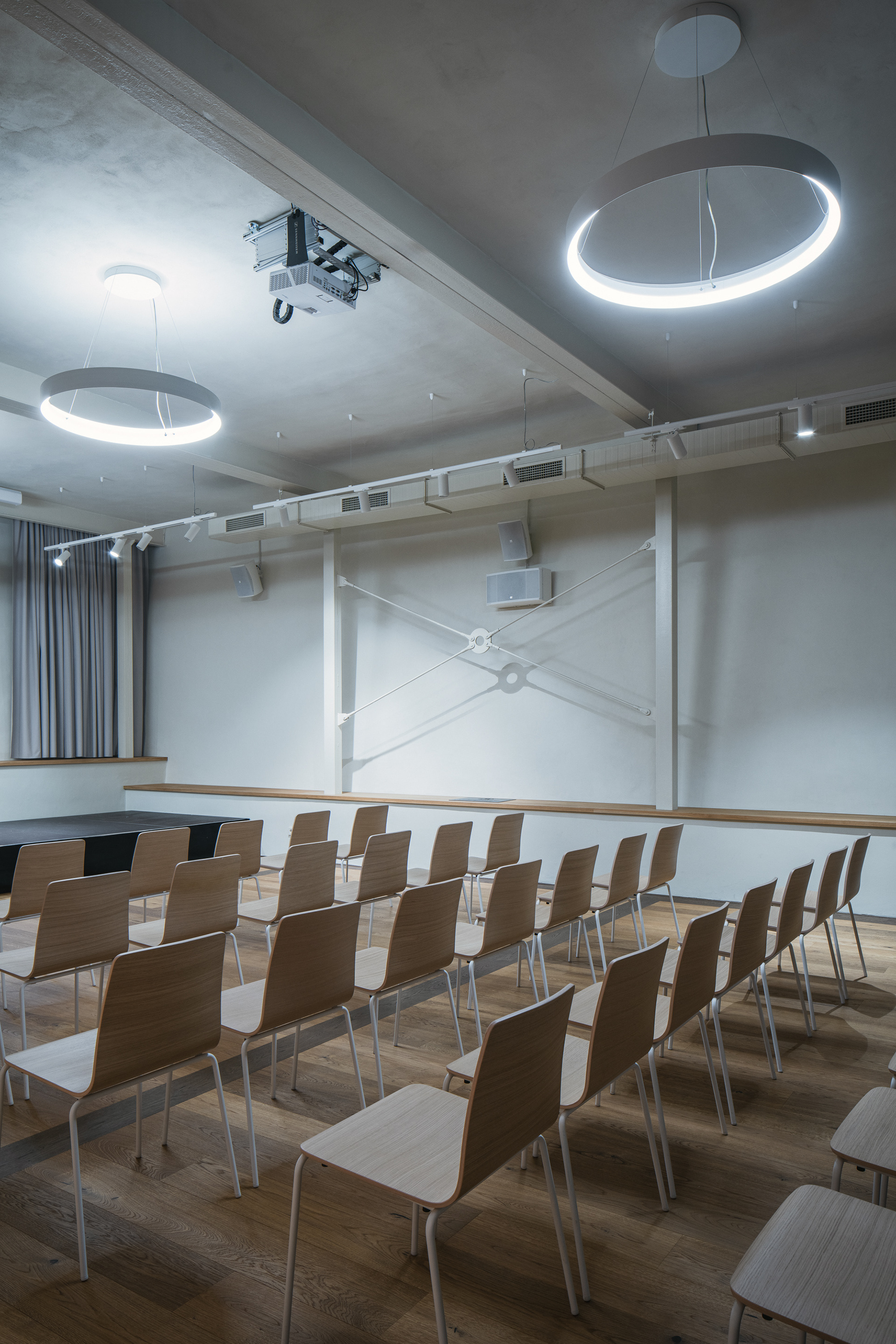 The more than two centuries old classicist building is part of the cultural monument district. For many years it served as an outbuilding at the rectory. After a demanding reconstruction and the work of many people, a space was created for parishioners and neighbors from all over Hostivař to meet. The original volume and outline are values that have been preserved. The architectural design responded to the investor's request - multiple purposes in one and under one roof.