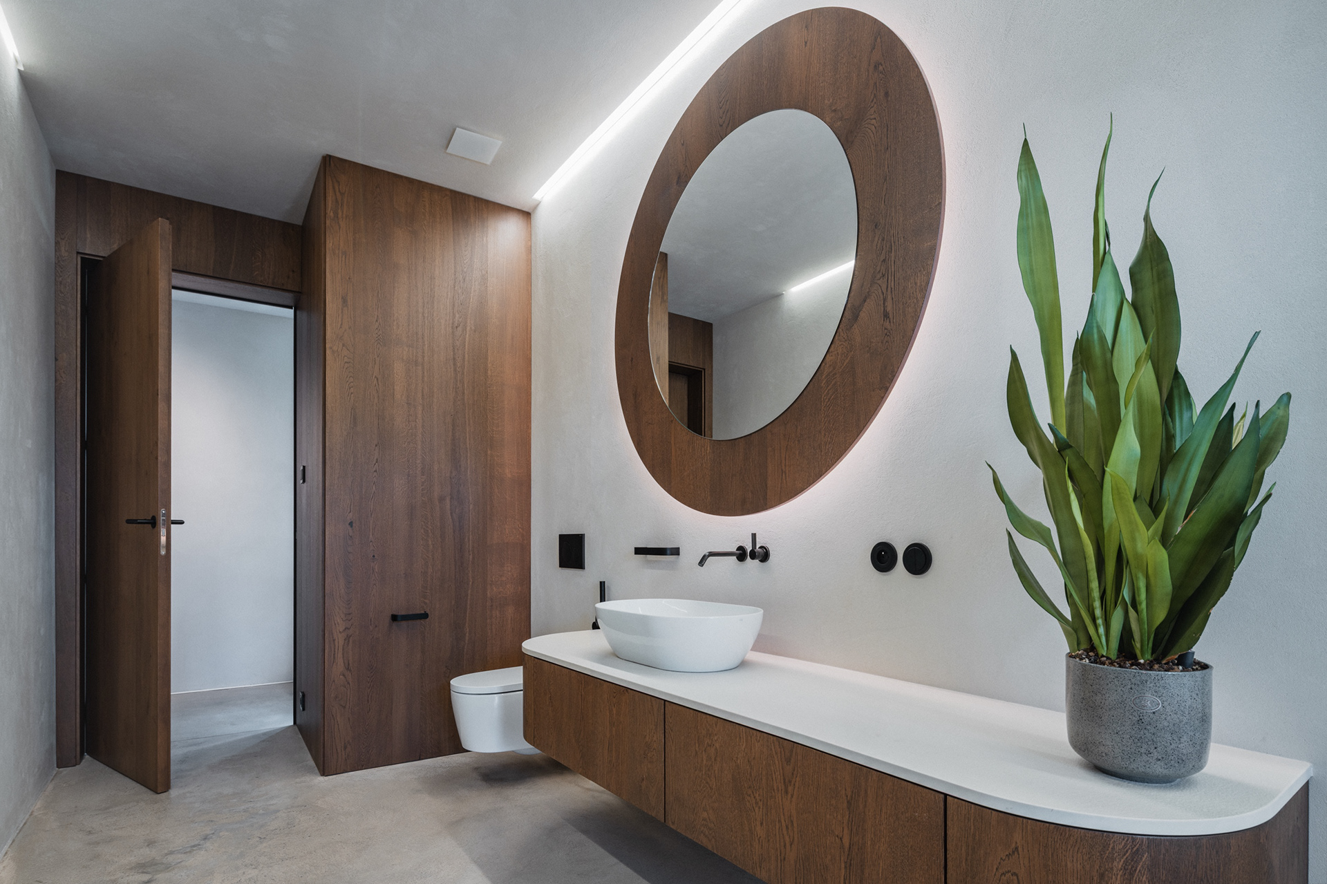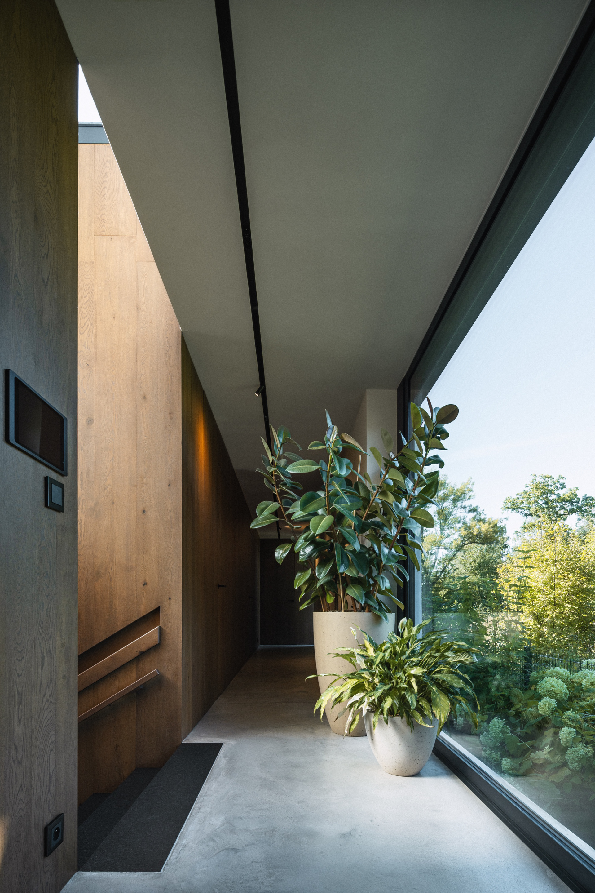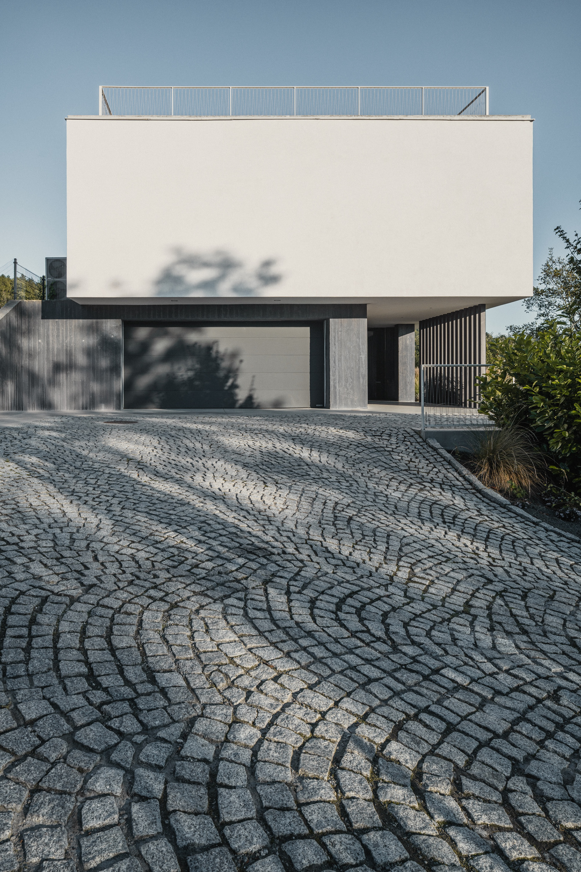 The family house in Skalica was built on an extremely challenging, but at the same time exceptionally attractive plot of land. The entire area is significantly sloping, with a distinct terrain break of one storey in height. This fact became a defining element of the design – the architectural concept works with the terrain not as a limitation, but as an opportunity to create a building that is in direct dialogue with the landscape.