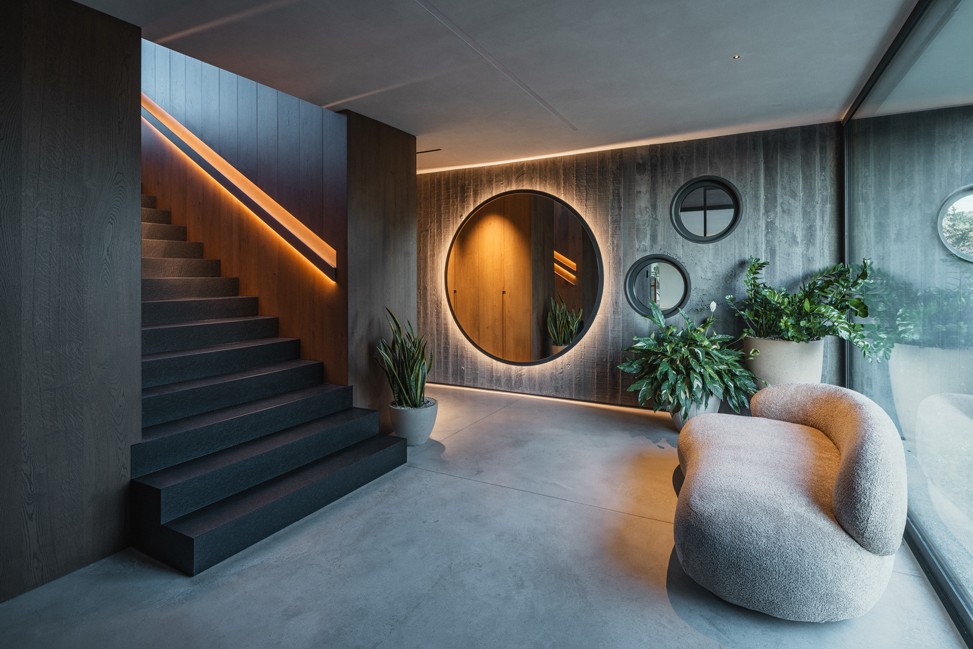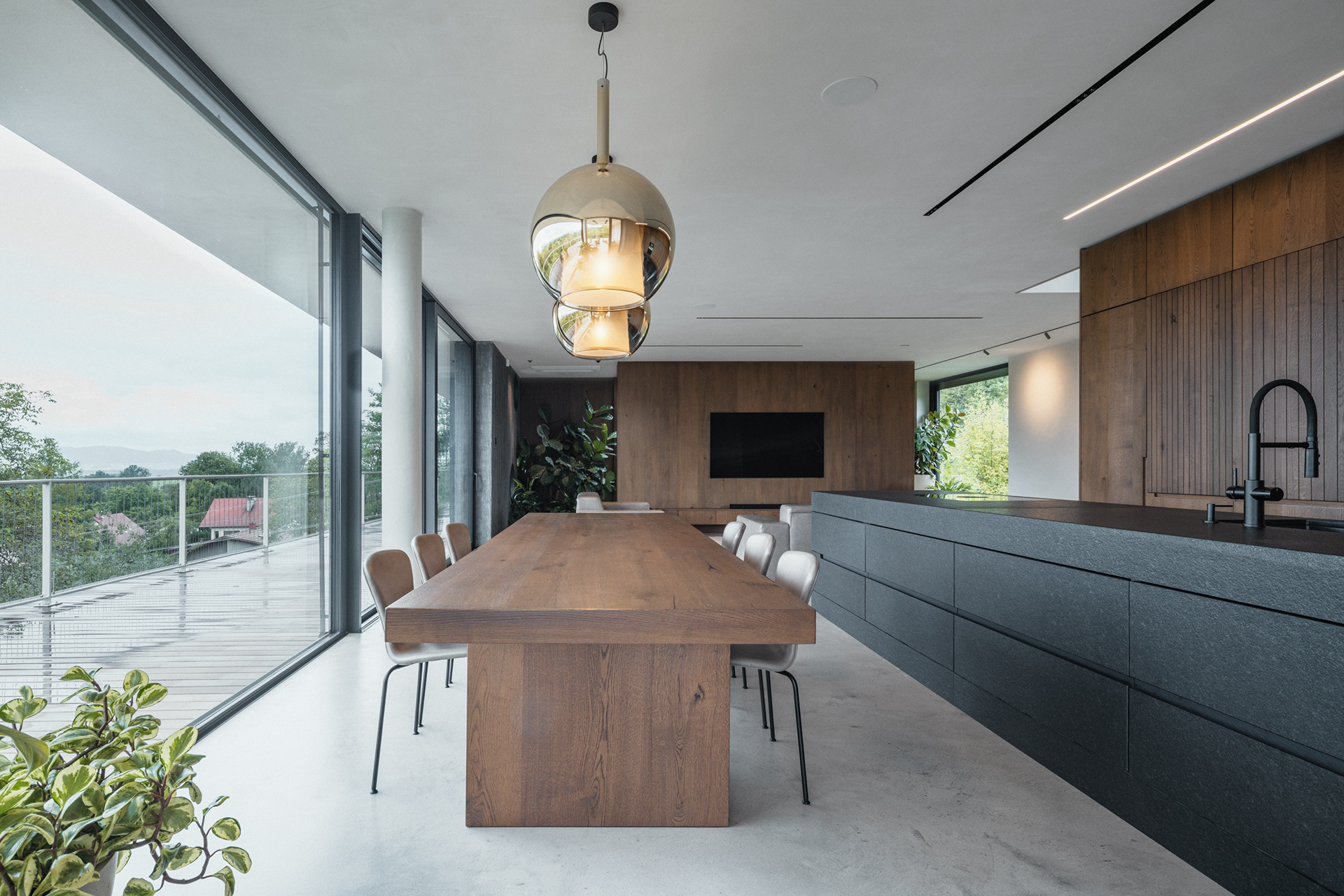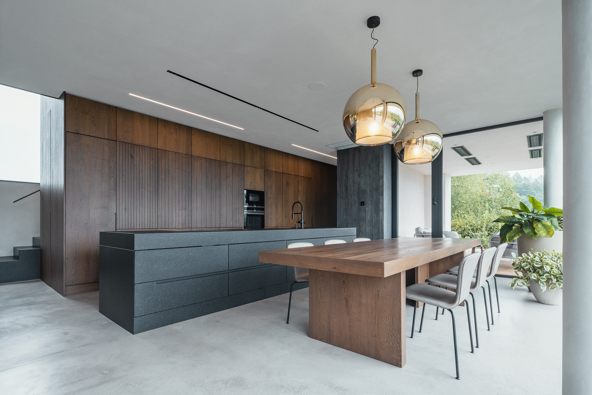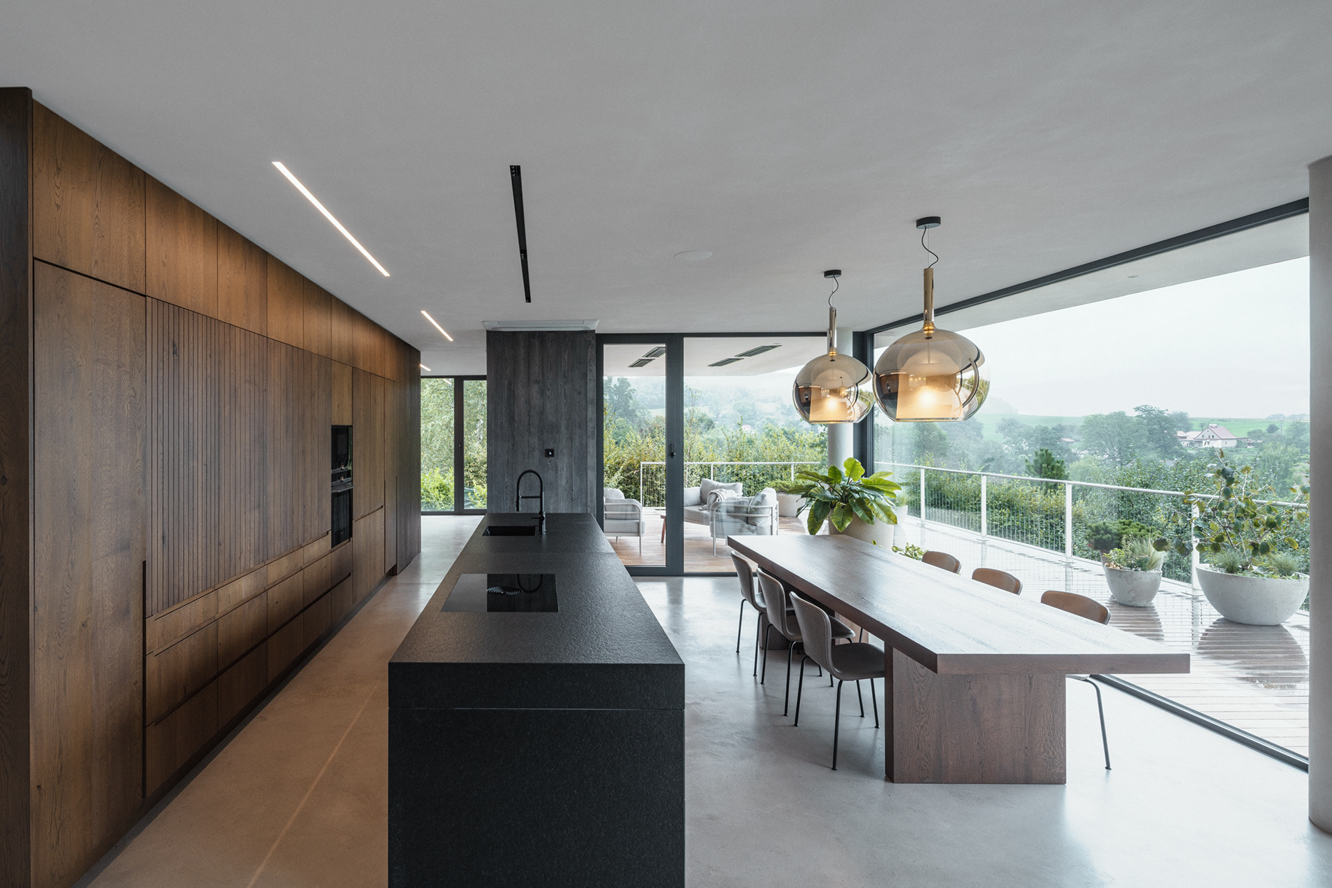 The family house in Skalica was built on an extremely challenging, but at the same time exceptionally attractive plot of land. The entire area is significantly sloping, with a distinct terrain break of one storey in height. This fact became a defining element of the design – the architectural concept works with the terrain not as a limitation, but as an opportunity to create a building that is in direct dialogue with the landscape.