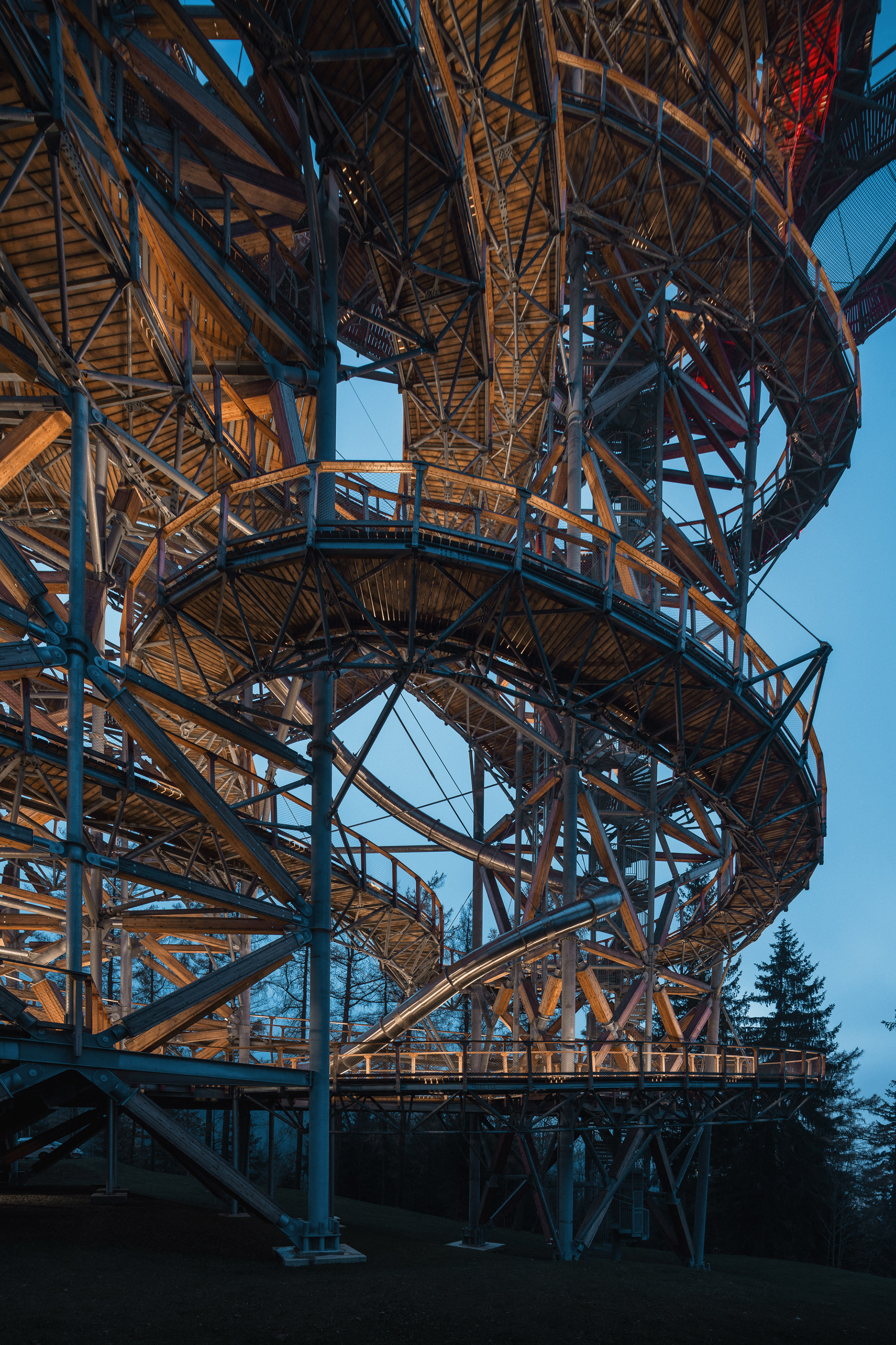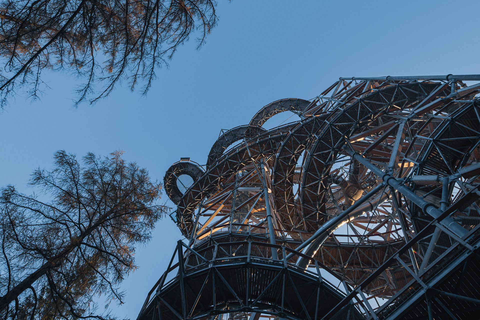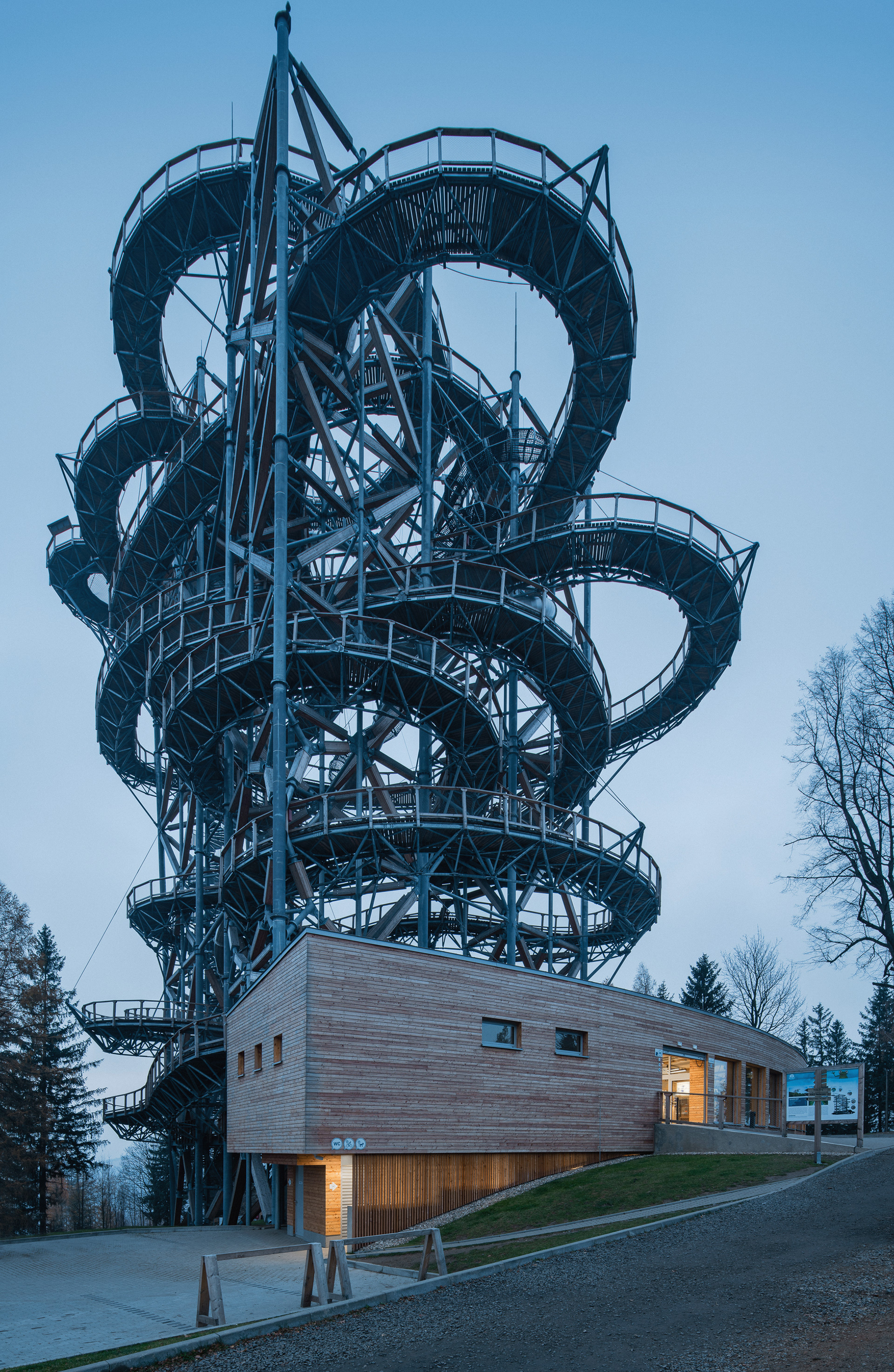 I considered the trail as an artistic achievement, it is spatial calligraphy, a line on a huge scale. Visitors can walk there as if in the branches of trees, always higher. The material solution is chosen to harmonize with the natural environment, i.e. mainly from natural materials such as wood. An important role is played by the location of the tower, which takes into account the surrounding terrain and possible views of the landscape in terms of height and connects to existing communications.