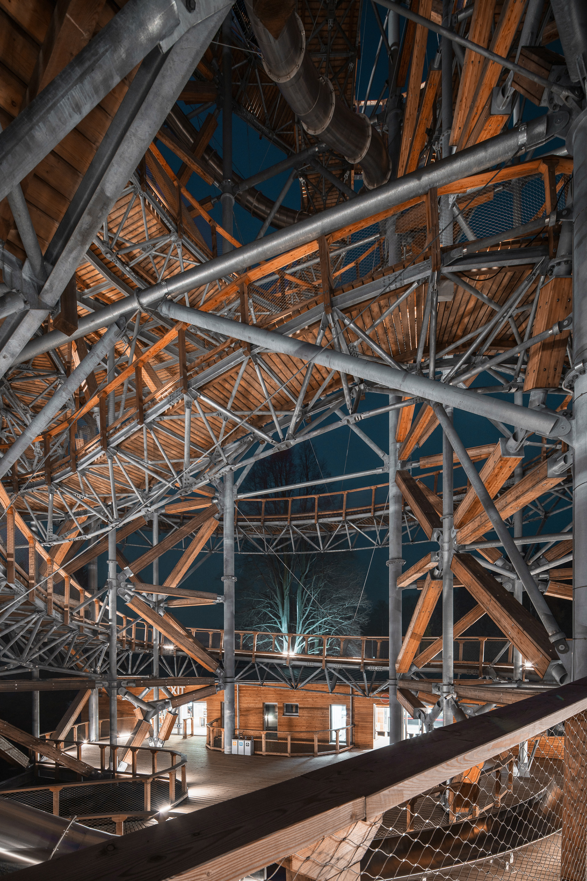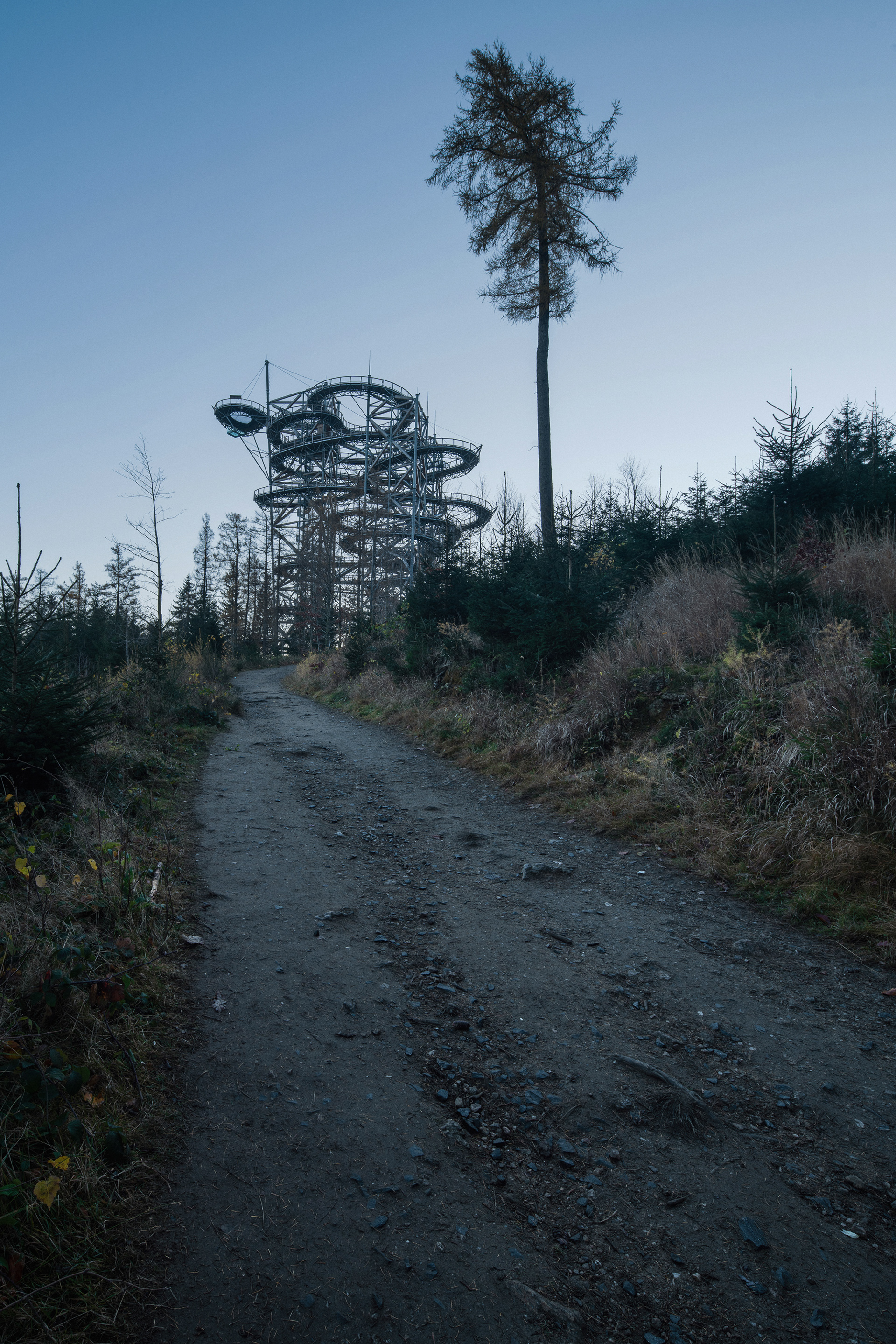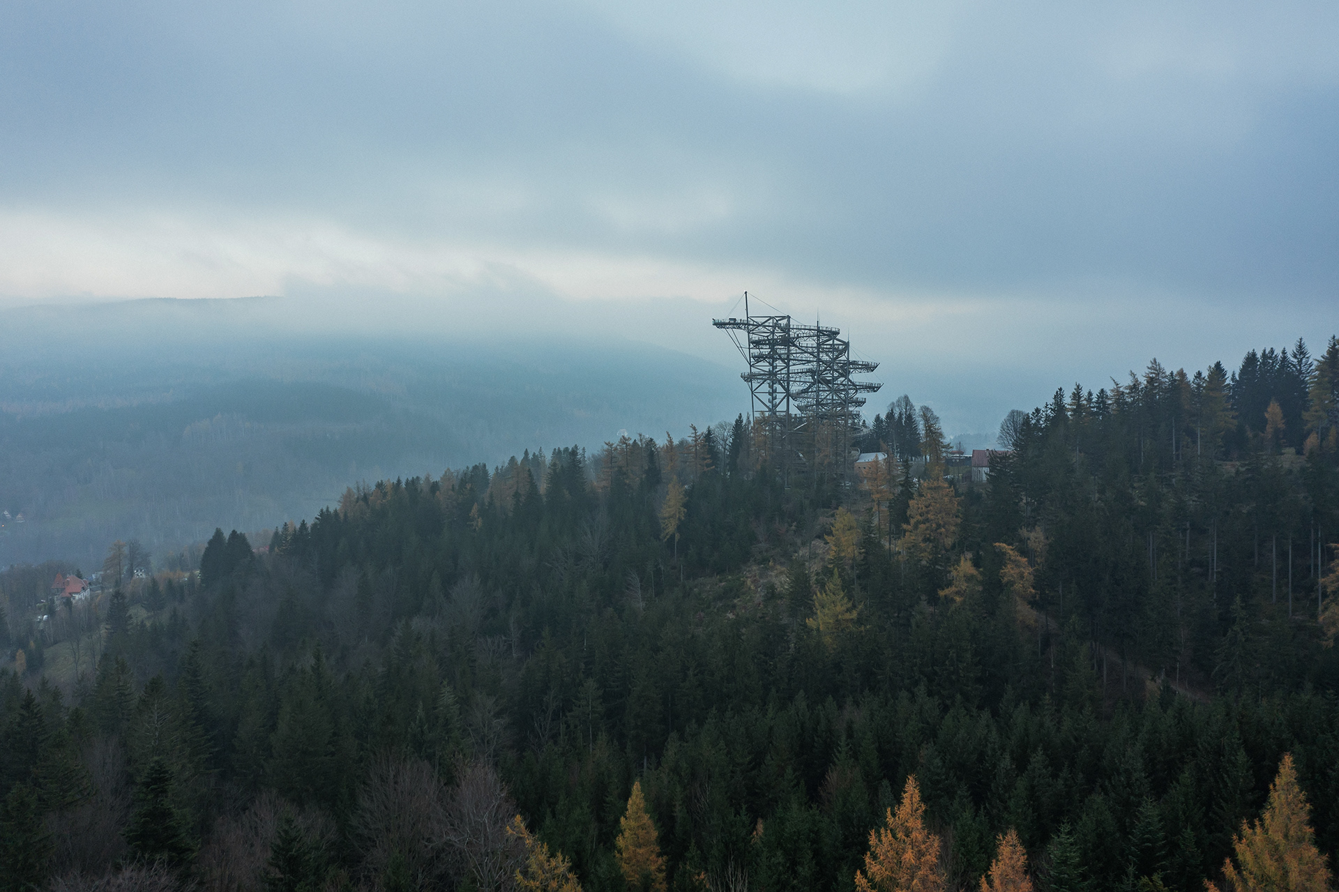 I considered the trail as an artistic achievement, it is spatial calligraphy, a line on a huge scale. Visitors can walk there as if in the branches of trees, always higher. The material solution is chosen to harmonize with the natural environment, i.e. mainly from natural materials such as wood. An important role is played by the location of the tower, which takes into account the surrounding terrain and possible views of the landscape in terms of height and connects to existing communications.